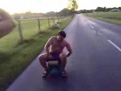 Aquí está la solución , este chico se ha construido su medio de transporte con una caja de cervezas , y no va lento el chaval.